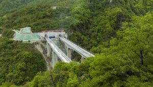 跃龙门隧道位于四川省绵阳市安州区高川乡和阿坝州茂县土门镇,穿越龙门山山脉,地处汶川地震灾害核心区;线路呈爬坡状,从四川盆地向青藏高原攀升,进出口高差达到346.3米,是我国在建铁路最为艰难的越岭隧道之一。