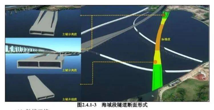 项目海域段以隧道形式下穿前海湾水域,其南端在前海合作区桂湾片区桂庙渠出口处北面约160m处,北端为在建的宝安滨海文化公园,紧邻沿江高速公路。
