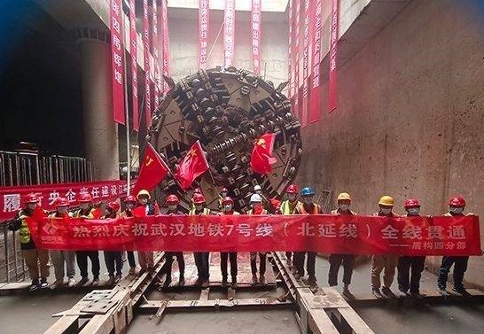 5月17日,随着“昆仑33号”盾构机刀盘破土而出,武汉地铁7号线腾龙大道站~巨龙大道站盾构区间左线隧道顺利贯通。至此,由水电四局轨道公司承建的武汉地铁7号线(北延)前川线5标盾构区间全线贯通。