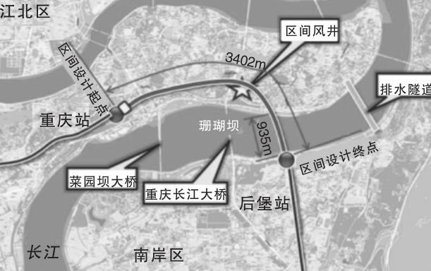 从网上公布的图纸来看,该条隧道从重庆站出发后,继续前行迂回到渝中区,然后转弯穿越长江抵达后堡。其江底隧道的位置处于南纪门轨道专用桥的附近。线路总长度约为4.3公里,其中江底隧道部分接近一公里。