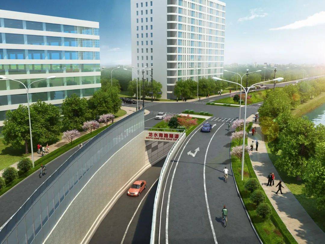 龙水南路越江隧道是黄浦江两岸一体化路网的重要组成部分,隧道采用双向四车道规模,西起徐汇区,在云锦路口以盾构隧道形式下穿黄浦江,达浦东前滩休闲公园处分叉,北线在海阳西路、耀龙路接地,南线在高青西路、耀龙路接地,北线隧道总长1772.9米,南线隧道总长2307米。隧道建成后,可实现徐汇滨江核心区域与浦东前滩地区的直接联系。