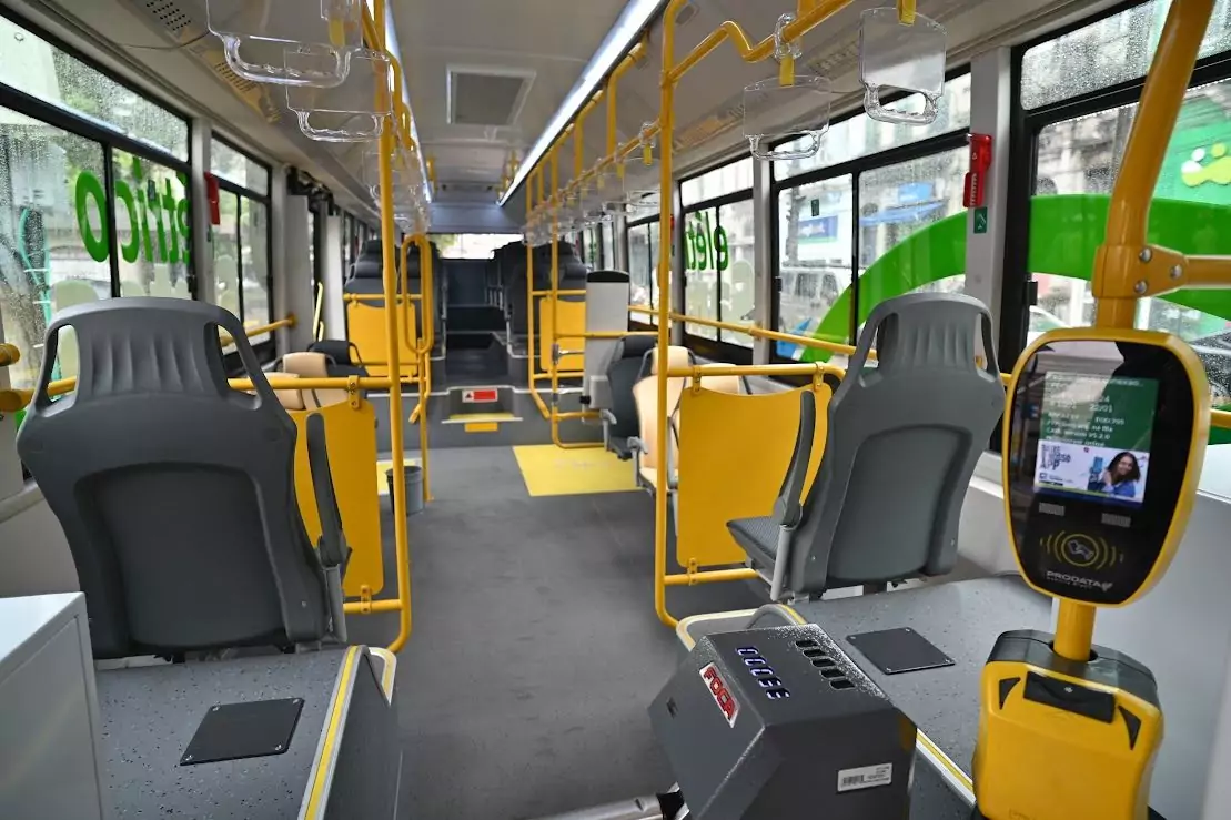 这款客车标志着中车正式进军巴西巴士市场,整车设计兼顾实用性与人性化。车辆标准座位28个,预留轮椅专用空间,最大可容纳62名站立乘客;采用低地板低入口设计,中央门配备手动坡道及ECAS跪式悬挂系统,无障碍出行体验拉满,同时搭载电动空调保障乘坐舒适度。