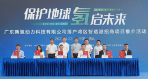 在项目落户同期举办的“庆祝2022第53个世界地球日暨氢能在工业车辆及生产供能中的应用高峰论坛”上,天津新氢动力科技有限公司董事长陈海涛通过线上形式对外正式发布了构建“智慧、高效”氢能绿色搬运体系的核心产品:“氢+5G无人3T级叉车”、“氢+5G无人5T无人输送车”、“固态金属储氢燃料电池叉车”系列全新氢能工业车辆。