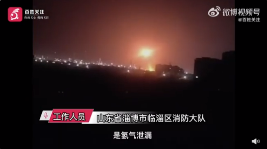 4月24日,山东临淄区齐鲁石化炼油厂发生爆炸起火,据悉火灾是因为氢气泄露着火导致。