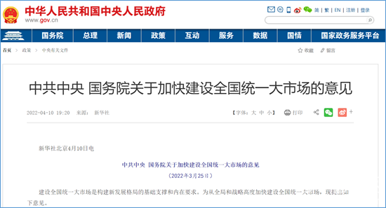 近日,《中共中央 国务院关于加快建设全国统一大市场的意见》(以下简称《意见》)发布,从全局和战略高度明确了我国建设全国统一大市场的总体要求、主要目标和重点任务,是“十四五”和今后一个时期建设全国统一大市场的行动纲领。落实好《意见》提出的重点任务,将推动全国统一大市场建设迈出新步伐。