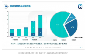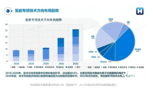 4.1 中低压氢气管道固态储氢系统及其应用技术(共性关键技术类)中国氢能联盟研究院分析了2018年-2022年近5年的氢能技术专项。布局方面,2018-2020年,技术方向布局集中在燃料电池环节,占比超过55%,主要方向为质子交换膜燃料电池技术;2020年后,技术布局逐步转向以制氢和储运氢为主的氢能供应链环节。
