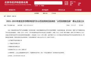 5月6日,2021-2022年度北京市燃料电池汽车示范应用项目拟承担“示范应用联合体”牵头企业公示发布。