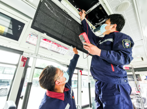 按要求,公交出车前要检查车辆空调技术状况,及时报修解决空调故障隐患,严禁驾驶空调故障车辆上路运营。公交集团在常态化日检查空调系统的基础上,加密管理人员对空调的检查频次,由“周抽检、月普查”调整为“日抽检、周普查”,确保空调系统始终处于技术状况完好状态、送新风功能保持最大送风量。