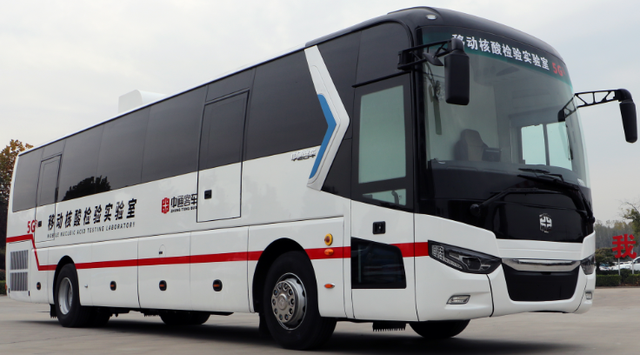 中通客车核酸检测车,具备机动灵活、检测高效、防护安全等核心优势,达到P2+生物安全实验室标准,并搭载医疗专用空气调节系统,配备高效新风过滤系统、医疗给排水系统以及全自动PCR分析系统,最快2小时即可出报告,单日最高可满足10万人次检测需求,极大缓解了各地激增的核酸筛查压力。中通客车移动CT,集成了5G实时传输技术、无接触扫描技术等领先科技,并支持远程医疗功能,为优化就诊流程、减少院感风险提供解决方案;中通客车旅团客车、纯电动公交等产品,也在为维护城市交通运营、护送隔离人员以及一线抗疫人员安全回家而日夜驱驰。
