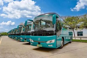 五月的厦门,盛夏的骄阳还未到来,火红的凤凰花已在街头巷尾次第盛开,为这座海滨城市增添一股明媚的热情。在厦门金龙旅行车有限公司(下称“金旅客车”)海沧生产基地,凤凰花掩映下,新一批金旅纯电动旅游大巴正式启程,奔赴广州,交付广州市都城汽车租赁有限公司。