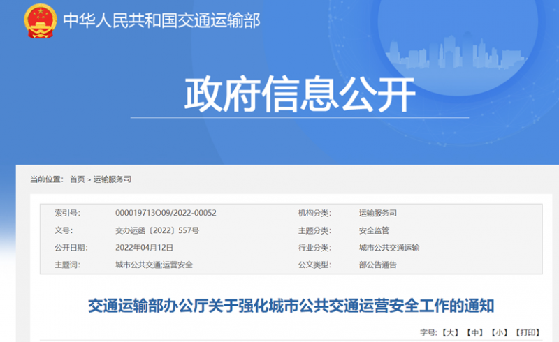 交通运输部办公厅关于强化城市公共交通运营安全工作的通知