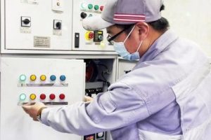 李峰正在处理客车空调控制柜故障 (央广网发 吴小强 摄)