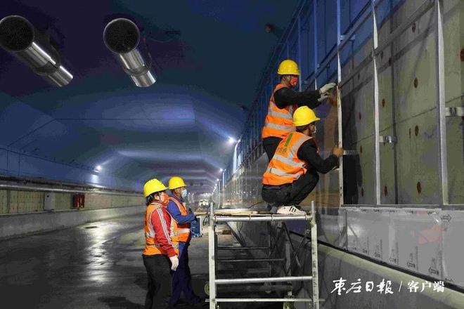 5月10日,记者在滕州市墨子湖隧道及引道工程施工现场看到,工人们正在进行引道、机电安装及装饰装修工作。