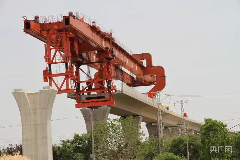 上跨京沪铁箱梁架设施工(央广网发 上海铁路局蚌埠站供图)