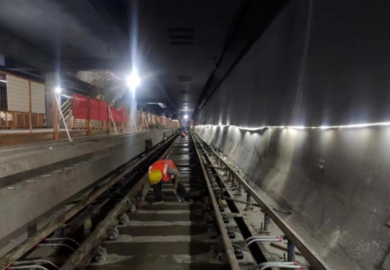 该区段轨道长2.316公里,设4个作业面,同步人工散铺施工,这是10号线二期首个实现“短轨通”的区段,标志该工程建设进入冲刺期,为后续供电、信号、人防门、站台门、装修等专业进场创造了条件。