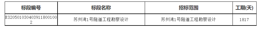 苏州湾1号隧道工程勘察设计标段服务招标资格预审公告(代招标公告)